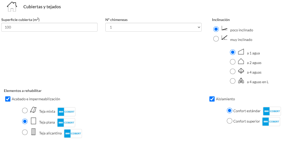 BMI ha elaborado esta herramienta para que de forma rápida y sencilla puedas conocer el detalle y presupuesto orientativo de tu cubierta inclinada.